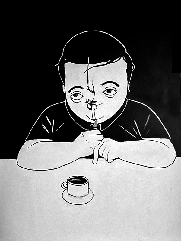 Konze a commencé à peindre avec le graffiti fin des années 90s puis s’est rabattu vers les toiles dans les années 2000. A l’époque surtout pour faire plaisir à ses amis et par la suite un peu plus sérieusement…